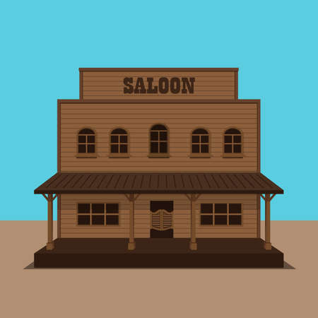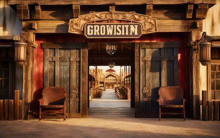 Old Saloon, Wild West Town Building, Cowboy Pub Exterior, Copy Space, Generative AI Illustration