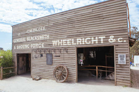 Calico ghost town California, USA. May 29, 2019. Calico Town Hall building facade in a sunny spring day