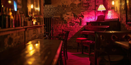 Photo Of Chairs And Tables Neatly Stacked In A Silent Pub. Generative AI
