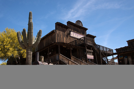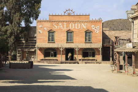 TABERNAS DESERT, ALMERIA ANDALUSIA / SPAIN - SEPTEMBER 18, 2011: Saloon movie location set for spaghetti western in desert, in spanish Desierto de Tabernas. Protected wilderness area. Europe