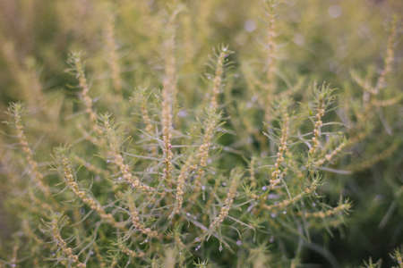Flowers of tumbleweed, also known as Russian Thistle. Close up, macro shot.