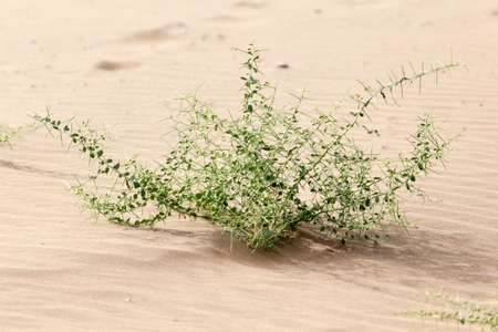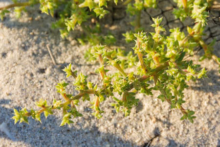 Prickly saltwort or glasswort, Salsola kali (Kali turgidum) growing on coastal dunes of Galicia, Spain