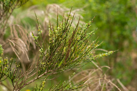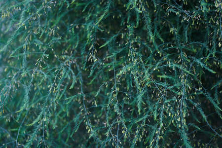 Plant with a multitude of small and green leaves. Vibrant display of green, delicate branches. Shrub showcasing its intricate branching pattern