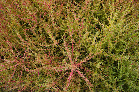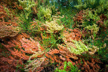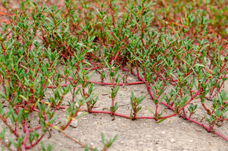 Seablite (Sueda maritima) growth in acid soil. Acid soil indicator plants. Pink Seablite. Acid loving plants. Valentine's day background. Exotic plant with pink leaves.