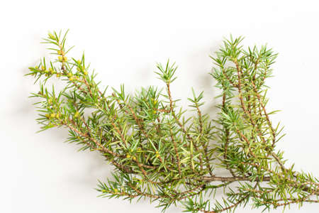 spring in ukraine. fresh green branches of juniper. green background. earth day
