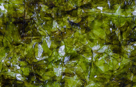 Fresh laminaria (kelp) seaweed as background, closeup