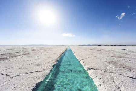 Salt water pool on the Salinas Grandes salt flats in Jujuy province, northern Argentina.