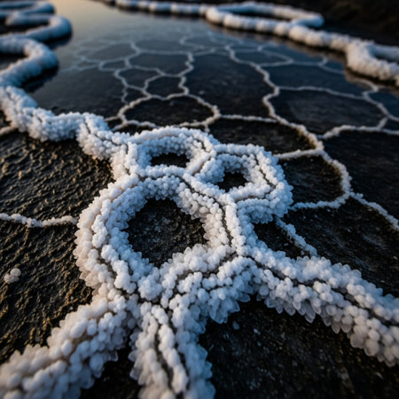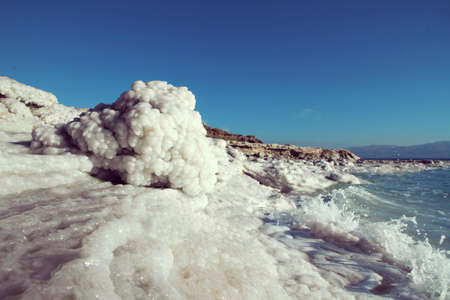 Close up of Dead Sea salt crystals on the ground, Israel.