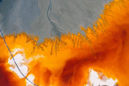 Drone view of contaminated, toxic water stream in Geamana, Romania