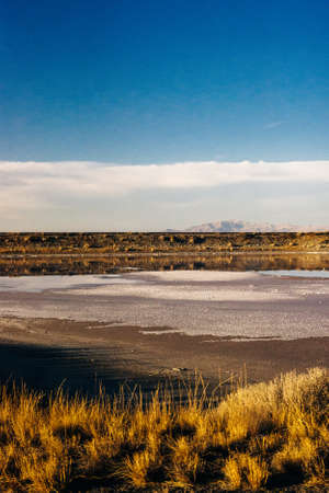 Salt And Shallow Water In Bonneville Salt Flats, Utah, USA. High quality photo
