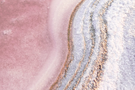 Pink salt crystals. Natural pink salt lake texture. Salt mining. Extremely salty pink lake, colored by microalgae with crystalline salt depositions