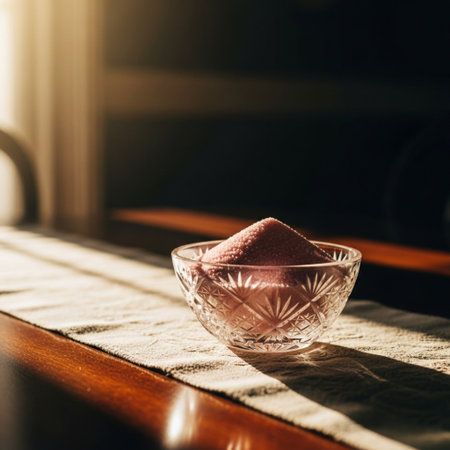 A charming breakfast arrangement showcases glimmering salt and sugar shakers resting on a wooden board, complemented by fresh bread and an elegant cup, inviting a warm morning atmosphere.