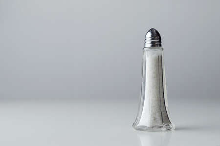 Fine salt in salt shaker and spilled salt. Cooking concept.
