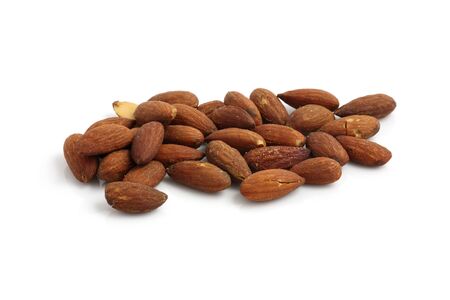 Dried brown Almonds protein snack on white background