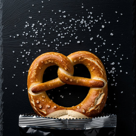 Delicious pretzels with salt on vibrant background for snack inspiration
