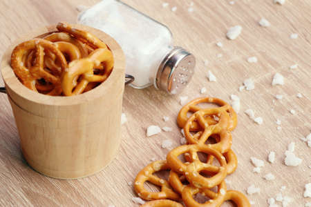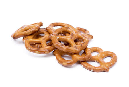 Bavarian beer snack. Mini pretzel pretzel, salted biscuit crackers, isolated on white background. High quality photo