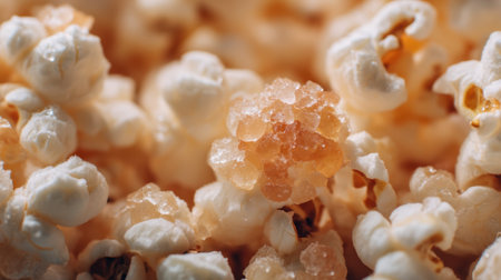 A captivating close-up of fluffy popcorn with a caramel coating, showcasing delicious textures and colors ideal for snack-themed visuals.