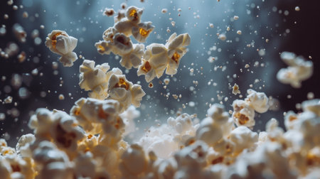 A captivating close-up image of popcorn sprinkled with salt, showcased against a dreamy backdrop with bokeh lights. Perfect for food-related themes.