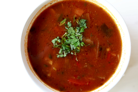 Solyanka closeup on a white background