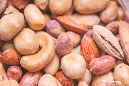 Close-up Mixed nuts. food background. Snack Fresh Nuts.
