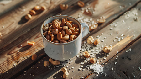 AI Generated. Mixed Nuts in a Jar on Rustic Wooden Table - Healthy Snack