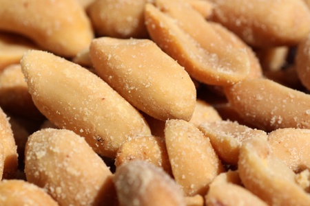 Macro shot with selective focus on a few of the foreground mixed nuts.