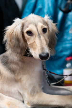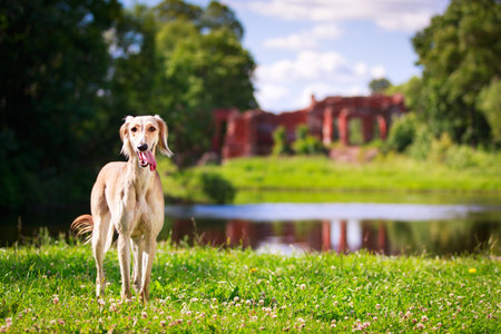 Elegant dog Persian greyhound breed saluki posing
