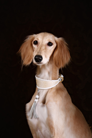 greyhound saluki dog portrait in black background