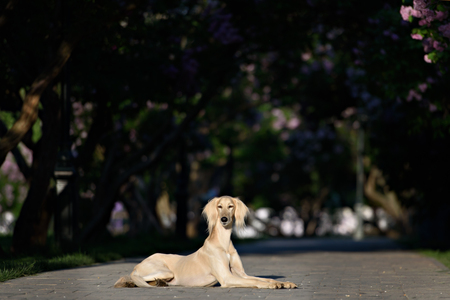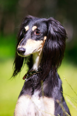 The portrait of Saluki dog in the garden summer day