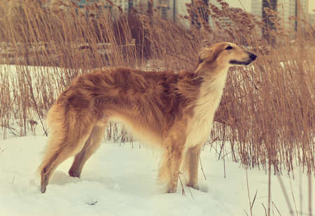 Perfect shape and fur of Russian borzoi breed dog.Pedigreed Wolfhound.