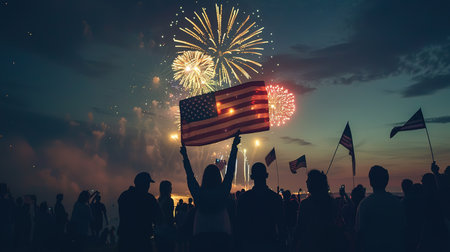 USA flag and people,Independence Day.National Day celebration,silhouette,generative ai