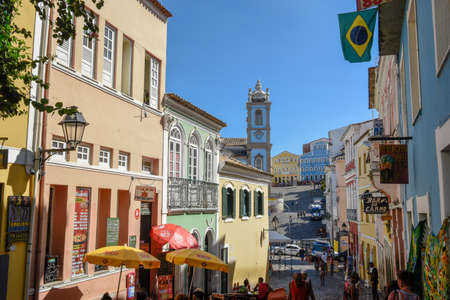 Salvador, Brazil - 3 February 2019: the historic district of Pelourinho in Salvador on Brazil