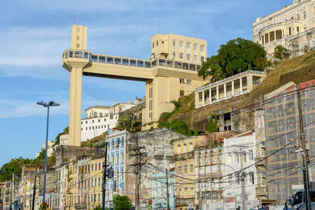 Salvador, Brazil - 3 february 2019: View of Lacerda Elevator from lower city in Salvador Bahia on Brazil