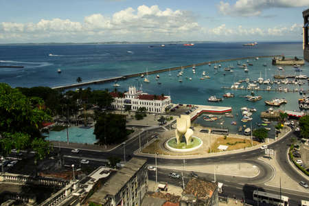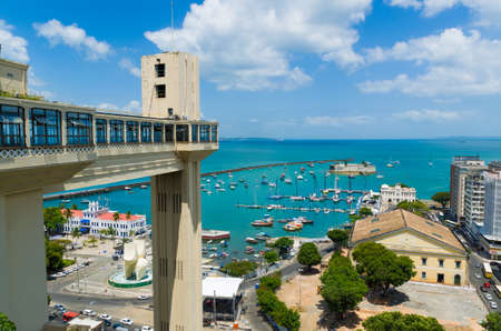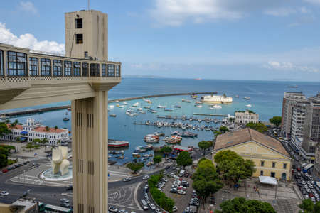 View of Lacerda Elevator and All Saints Bay (Baia de Todos os Santos) in Salvador Bahia on Brazil