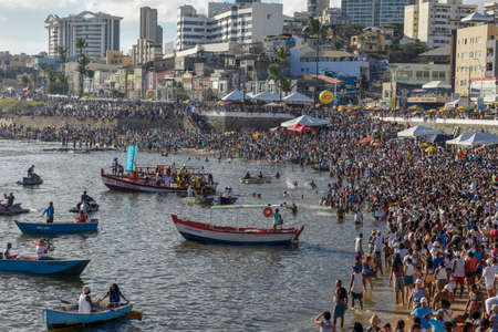 Salvador, Brazil - 2 February 2019: people during the celebration of Yemanja at Salvador Bahia on Brazil
