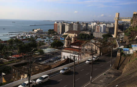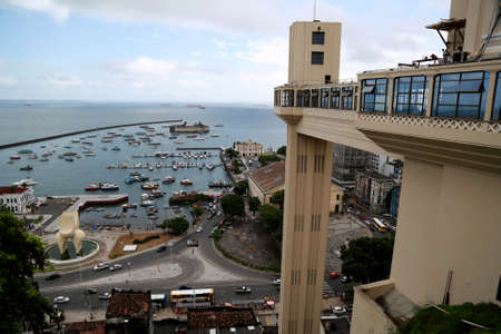 SALVADOR, BAHIA, BRAZIL: Lacerda Elevator and All Saints Bay Baia de Todos os Santos in Salvador, Bahia, Brazil.