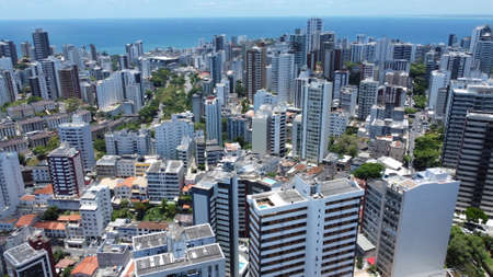 Salvador, Bahia, Brazil - October 29, 2021: Aerial view of buildings and homes in the city of Salvador.