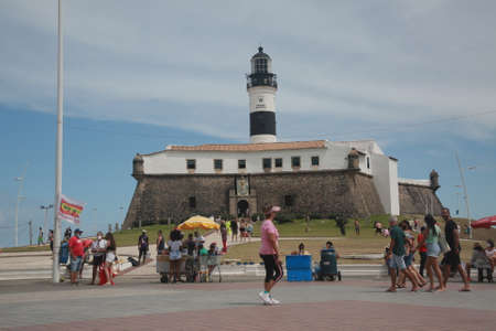 salvador, bahia / brazil - august 28, 2016: spotted fort of Santo Antanio da Barra, better known as Farol da Barra, in the city of Salvador.