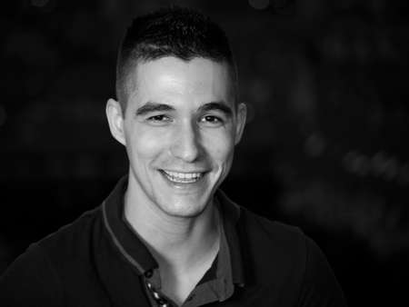 Handsome man outdoors portrait. Man smiling, looking in the camera