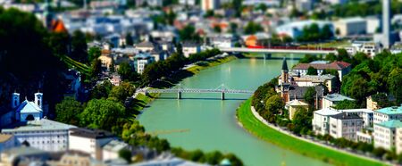 Tilt-shift aerial view to Salzburg, miniature effect, Austria