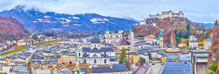 Panorama of Salzburg in winter: Snowy historical center