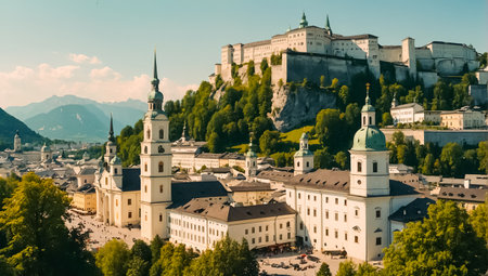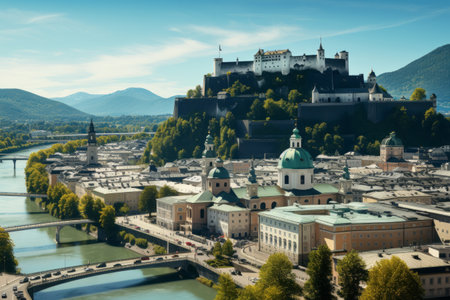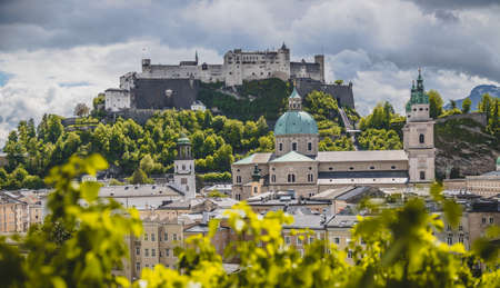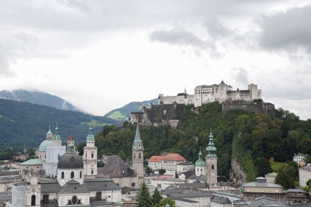 a city view of the city of salzburg in austria .. old town and hohensalzburg fortress
