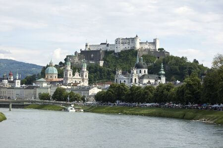 Salzach River in Salzburg, Austria. Famous place Festung Hohensalzburg, Salzburger Land, Austria, Europe