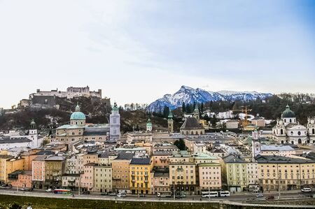 SALZBURG, AUSTRIA - JANUARY 09: Top view on Salzburg city and Hohensalzburg fortress on January 08, 2008 in Salzburg, Austria