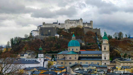 Fortress Hohensalzburg with mountains in the background, autumn time