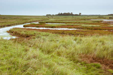 Beautiful landscape of marsh in Normandy in France with snaking river