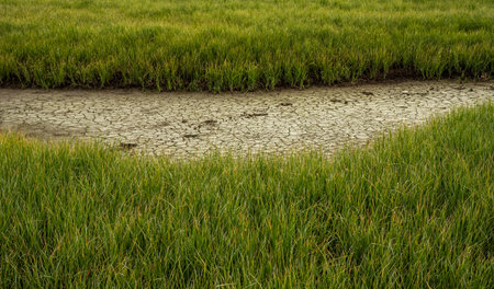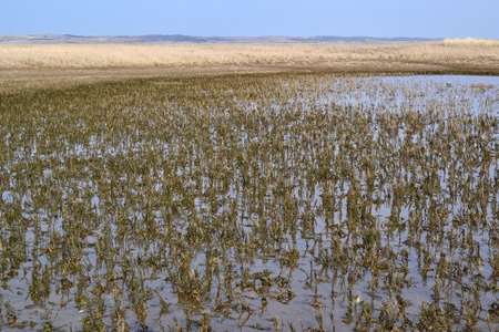 tufts of grass and mire on the silty swamp
