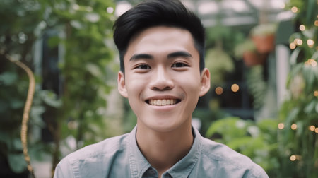 Portrait of a young asian man smiling and looking at camera