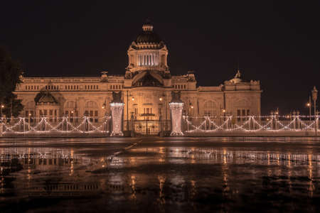 The Ananta Samakhom throne hall at night in Thailand
