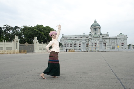 bangkok, thailand - october 2: an unidentified woman performs a thai traditional dance during a parade of people from the northern territory of thailand, october 2, 2011 in bangkok, thailand.